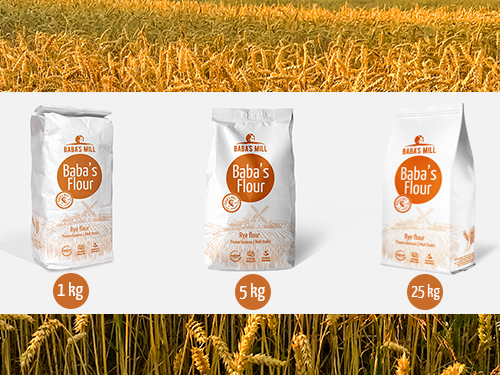 Baba’s Rye flour is a powder milled from whole rye berries or grains from rye grass. It is used to produce rye and sourdough bread, providing a distinctive flavor and improved nutritional content compared to bread baked with wheat flour. We also, traditionally use it when cooking baked goods, buns and bread, but it is usually added to corn and wheat flour to improve the taste. In addition to improving the taste, rye flour adds to the nutritional value of the food product and the longer preservation of the product's freshness. Baba’s rye flour contains a small percentage of gluten, which is good for people that take care of the gluten intake during the day.